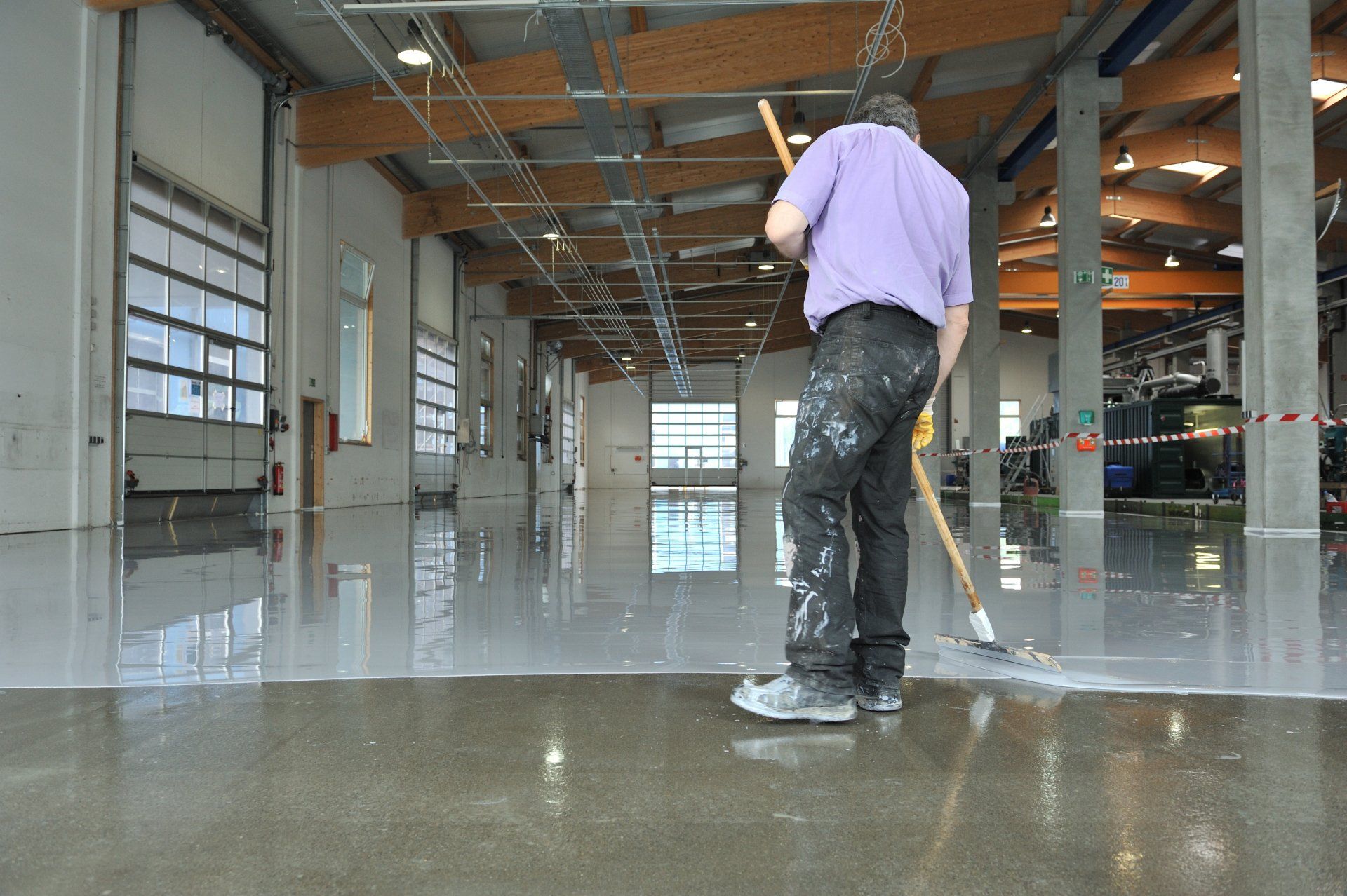 Anschließend wird durch das Auftragen verschiedener Oberflächensysteme der Terrazzoboden imprägniert,